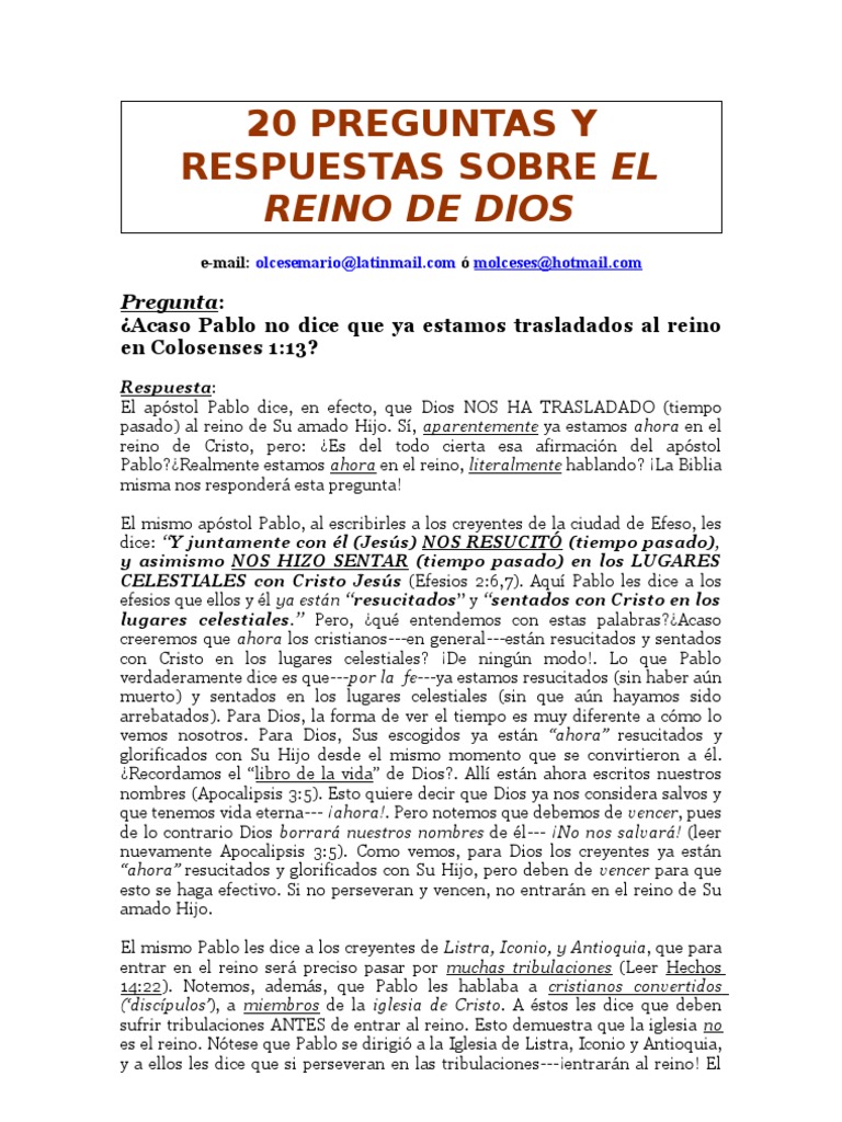 20 Preguntas Clave Que Muchos Hacen Sobre El Reino De Dios Y Sus Respuestas Precisas Cristo Titulo Pablo El Apostol